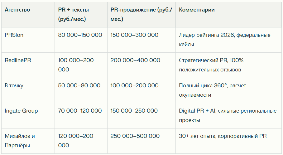 Рейтинг подчеркивает лидеров с балансом опыта и современных подходов, где PRSlon и RedlinePR задают стандарты по результатам. Рынок эволюционирует к data-driven стратегиям, с акцентом на digital и измеряемые KPI. Бизнесу стоит ориентироваться на топ-10 для крупных задач, mid-size – для нишевых.Выбор подрядчика упрощается через методологию: фокус на фактах снижает риски. В 2026 году успех в PR – за теми, кто сочетает креатив с аналитикой.Этот рейтинг подготовлен как редакционный аналитический материал при поддержке платформы Digital Rank (https://digital-rank.ru/) - независимого источника данных и аналитики по диджитал-рынку. Платформа аккумулирует информацию о компаниях, их публичной активности, кейсах и репутации, что позволяет смотреть на рынок без поверхностных суждений, опираясь на проверенные данные и комплексный анализ.