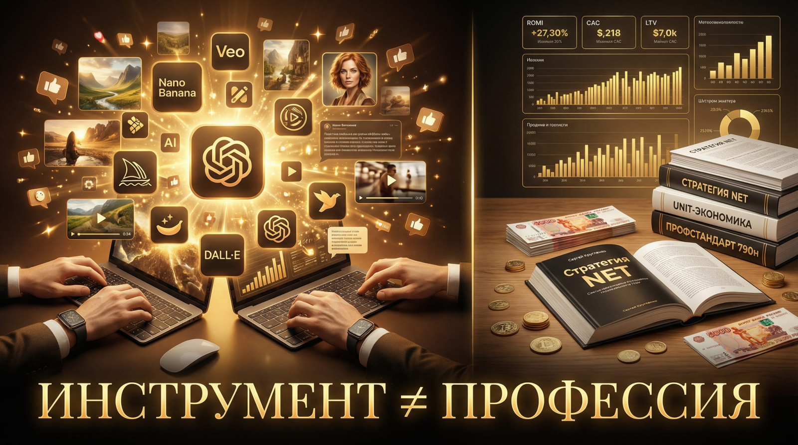 В моих предыдущих материалах на Sostav (retail-media, дроп-стратегии, Стратегия NET) я постоянно показываю: тактические инструменты без стратегии ведут в крематорий бизнеса. Нейросети — не исключение.