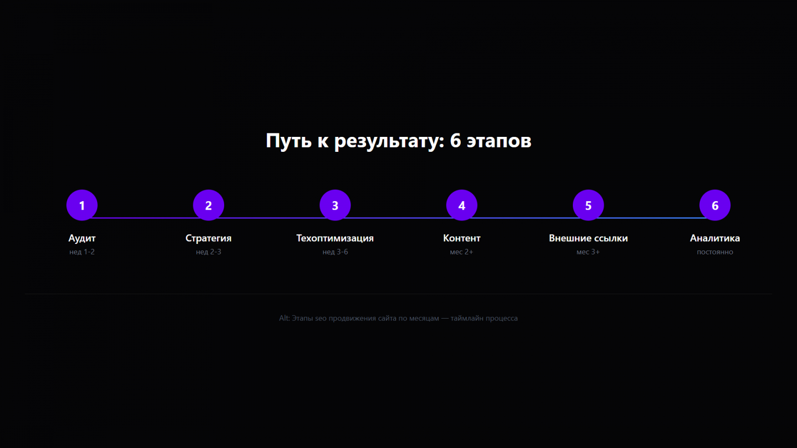Обратите внимание: первые 2–3 месяца — это фундамент. Заявки начинают расти с 4-го месяца. Если вам кто-то обещает «продвинуть сайт в топ за 2 недели» — перед вами шарлатан, не подрядчик.