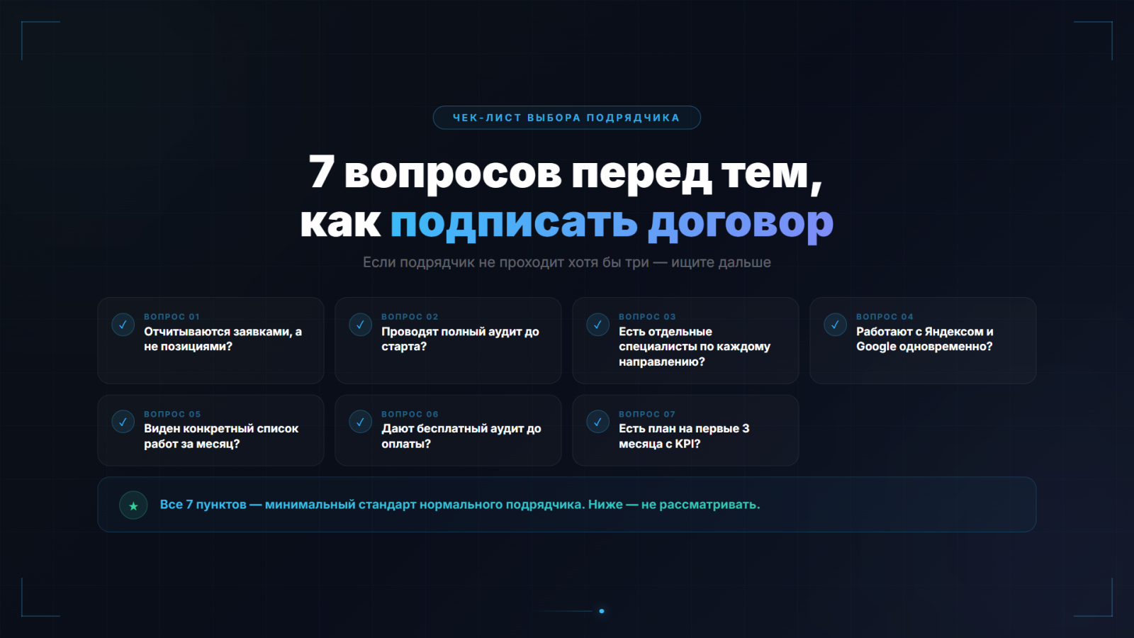 Чек-лист выбора подрядчика — 7 вопросов: