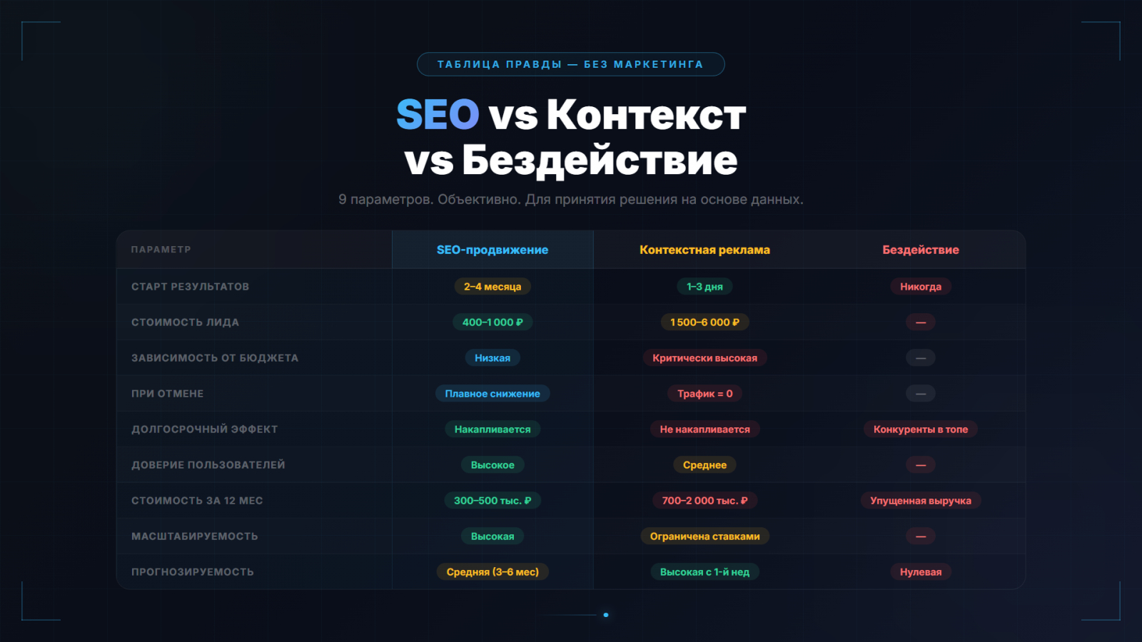 Это раздел, который меняет восприятие SEO с «расхода» на «инвестицию».