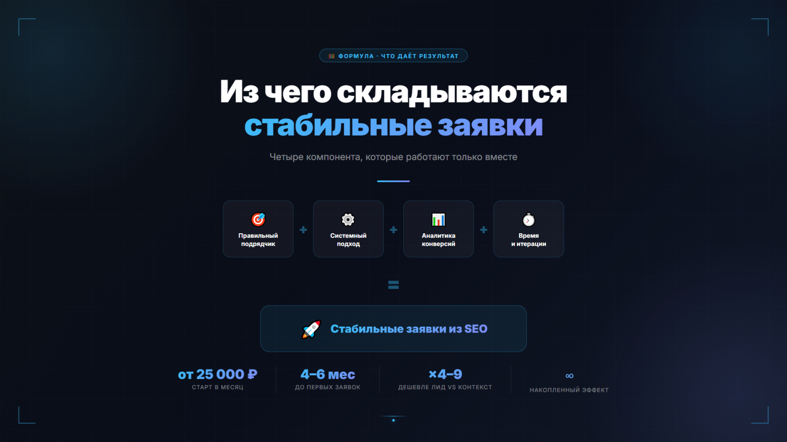 Стоимость — от 25 000 рублей в месяц. Бесплатный аудит без обязательств.