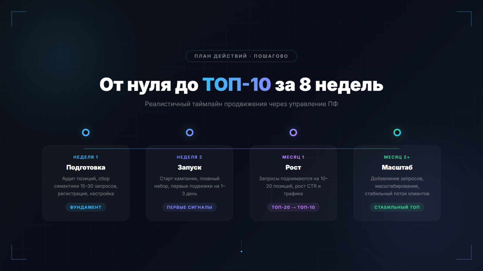 Каждый день без управления ПФ — это день, когда ваши конкуренты забирают ваших клиентов из поисковой выдачи. Не потому что они лучше. А потому что они управляют тем, чем вы не управляете.
