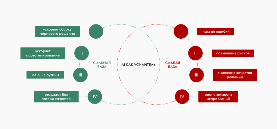 Если база сильная, ИИ даёт заметное ускорение. Если базы нет, он просто быстрее множит ошибки и технический долг.