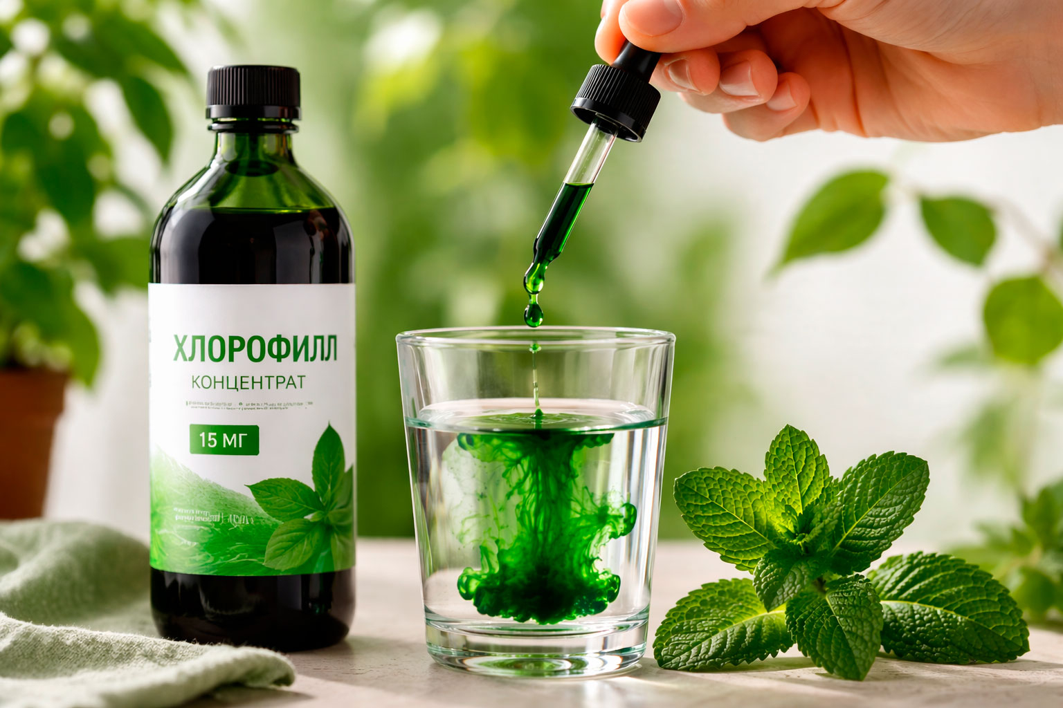 Хлорофиллин – это водорастворимое производное хлорофилла. В нем природный магний заменен на медь, а структура немного изменена для стабильности. Именно эта форма используется в большинстве добавок – жидких, капсульных, порошковых. Она хорошо усваивается, не разрушается при хранении и изучена в клинических исследованиях. Когда на упаковке написано «хлорофилл», почти всегда имеется в виду хлорофиллин натрия-меди.