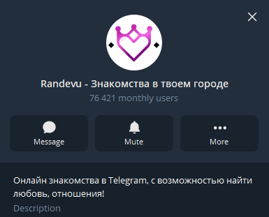 Описание: Telegram-формат знакомств с быстрым стартом и понятной механикой.