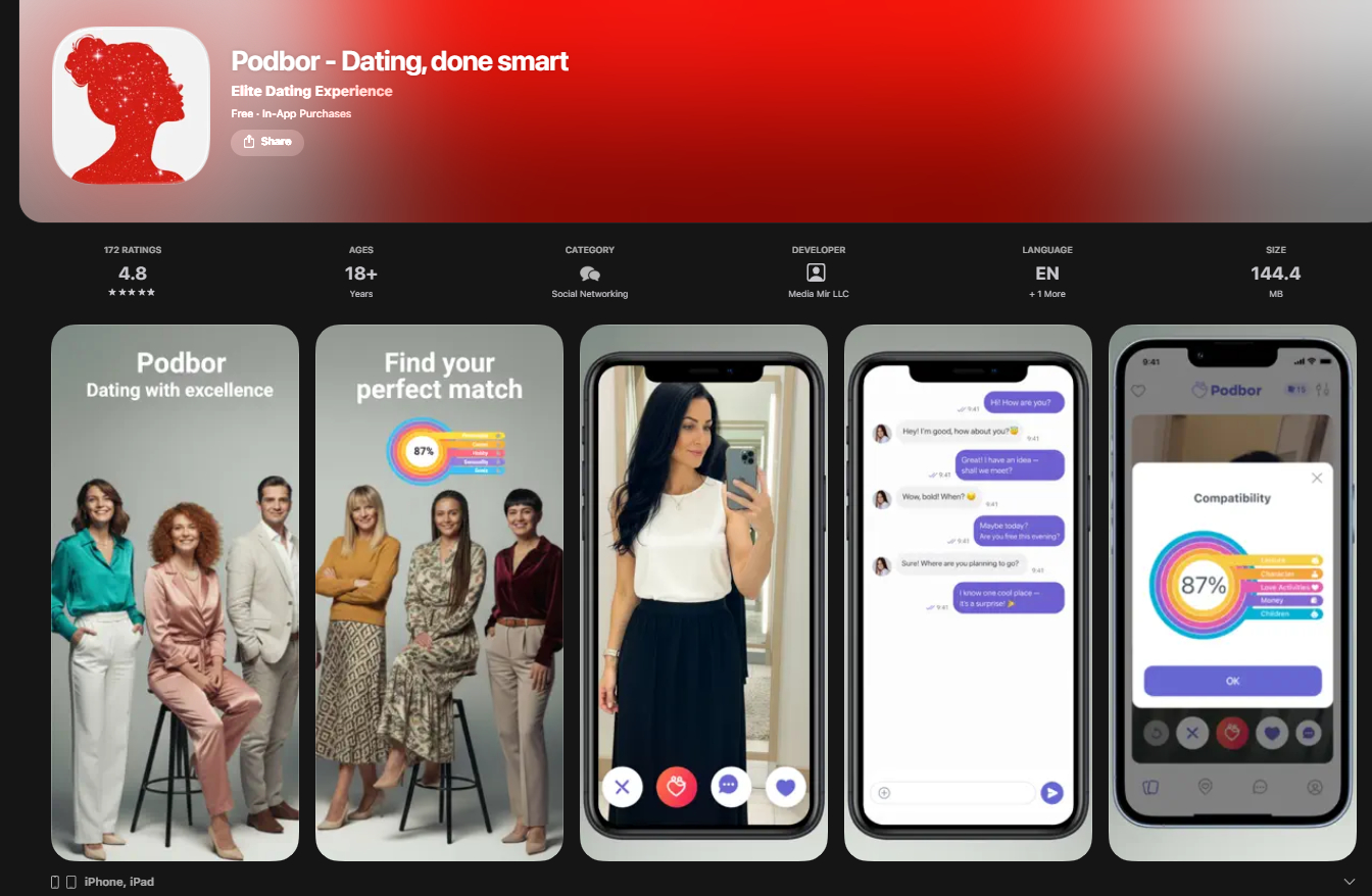- Описание: формат с акцентом на совместимость и содержательные анкеты.