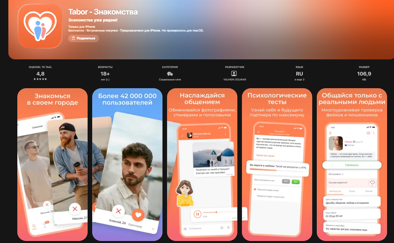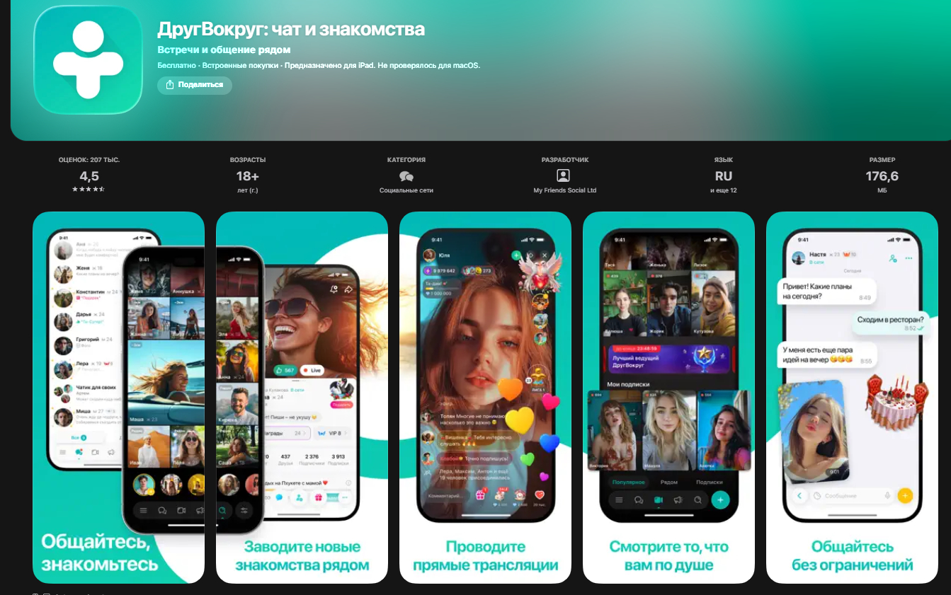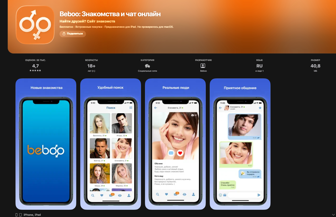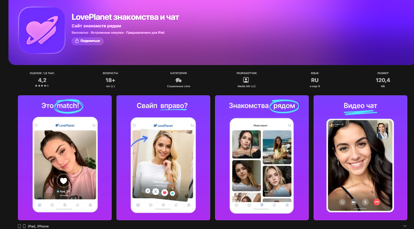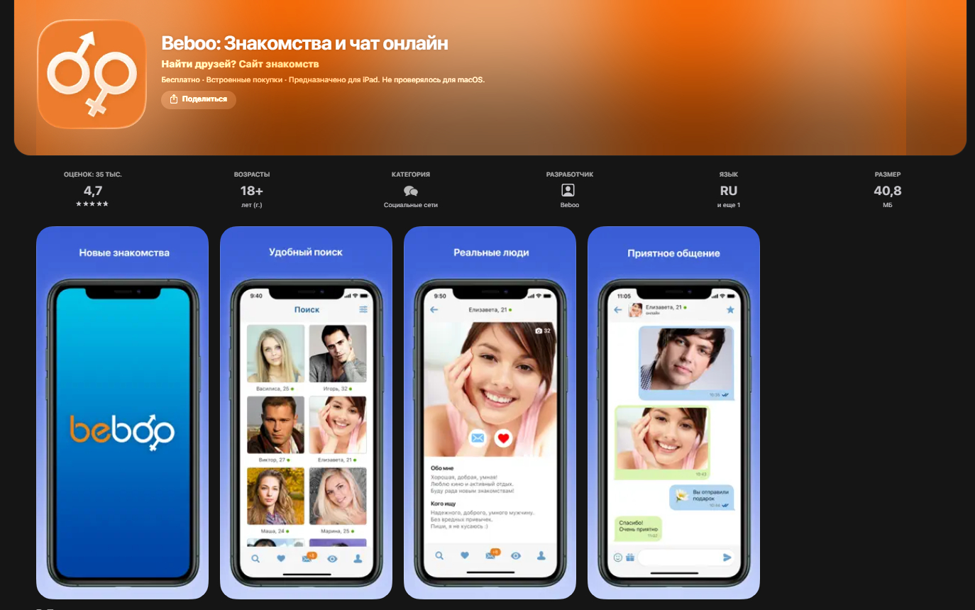 - Описание: Универсальный сервис знакомств, где легко начать общение и быстро собрать первые отклики.