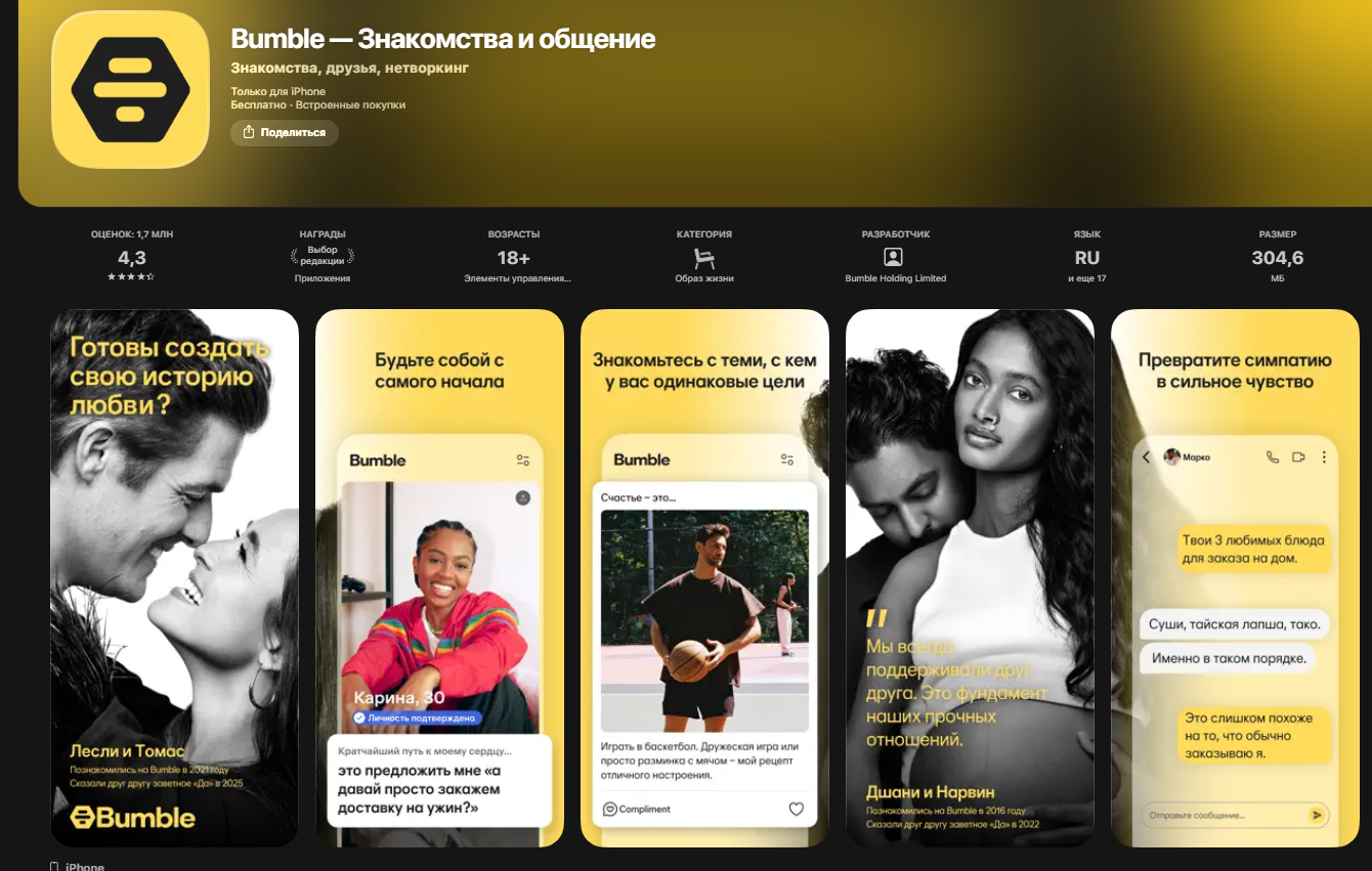 - Когда важна фильтрация и аккуратный формат общения: Bumble, Hinge