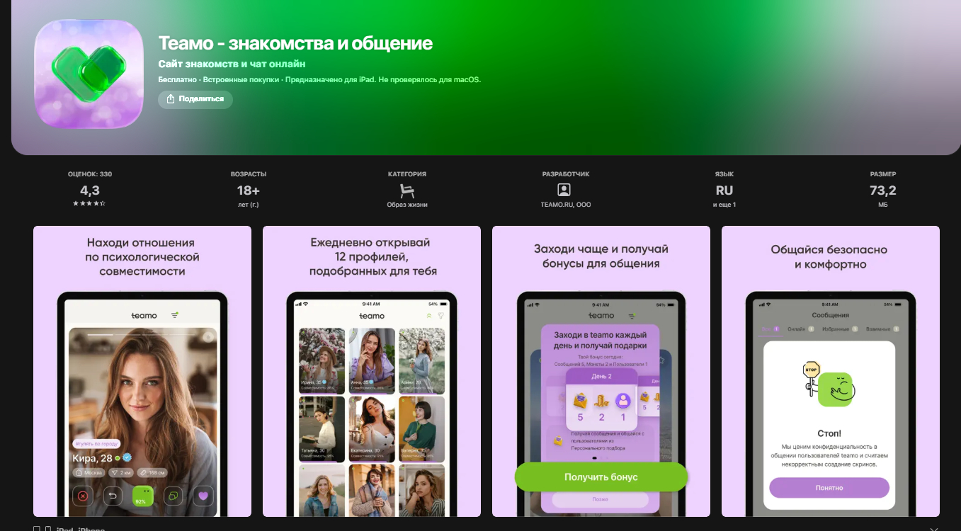 - Для серьёзных отношений и осознанного поиска: Teamo, LovePlanet