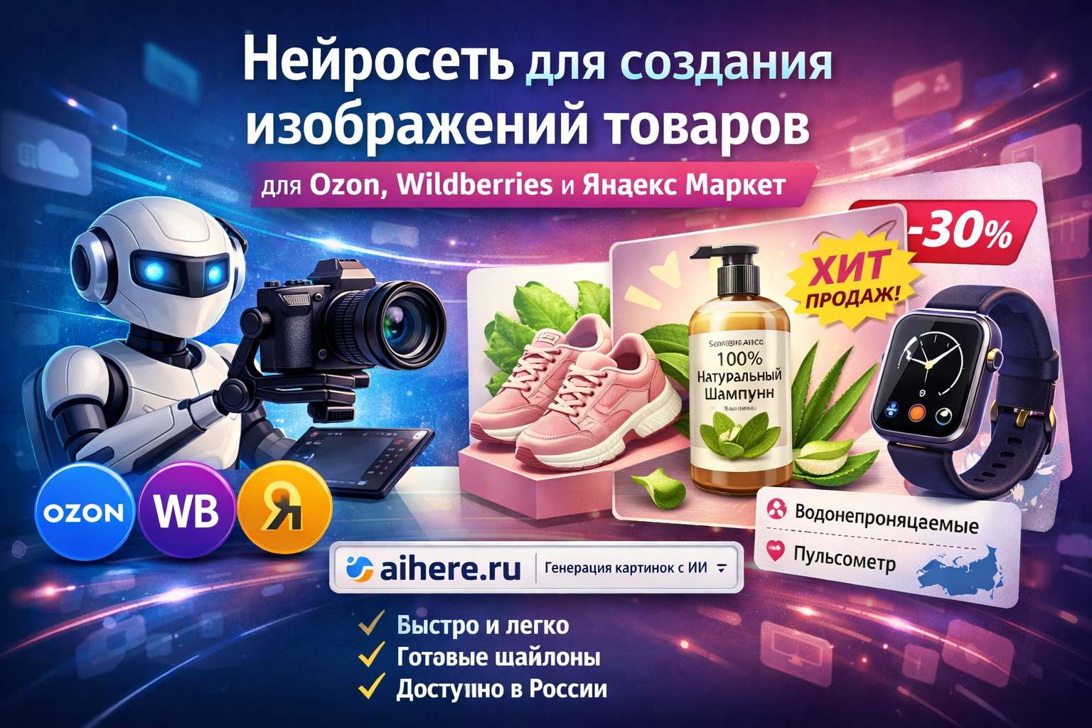 Это делает aihere одним из самых удобных решений для продавцов маркетплейсов.