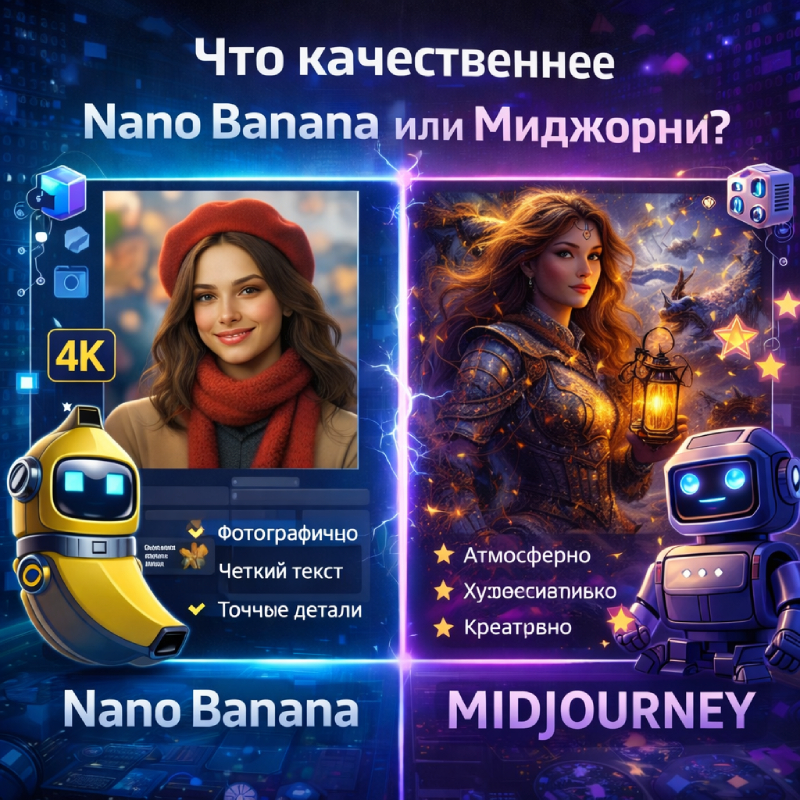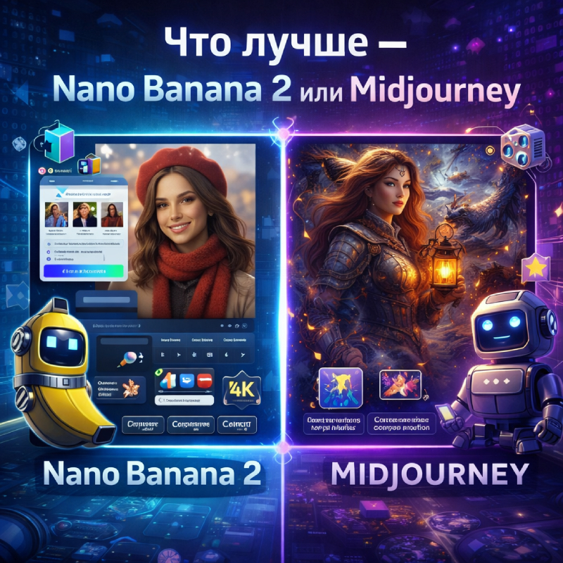 На этом месте сравнение Nano Banana 2 и Midjourney становится по‑настоящему интересным. Оба сервиса умеют выдавать сильную картинку, но делают это разным характером. Один любит диалог, правки и работу от референса к референсу, второй давно стал синонимом визуального стиля, атмосферных серий и мощного художественного почерка.
