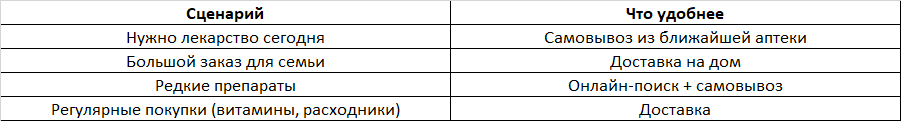 Ещё одна частая ситуация — оформление доставки, когда аптека находится буквально в соседнем доме. В таких случаях самовывоз экономит время.