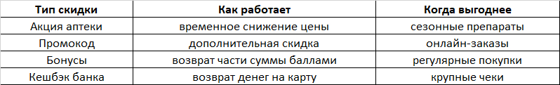 Иногда бонусы можно комбинировать с акциями. Но важно проверять условия: часть аптек ограничивает использование баллов на товары со скидкой.