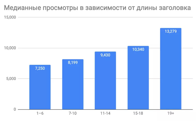 Эффективность длинных заголовков подтверждает и исследование Skillsetters. На vc.ru больше всего просмотров набирают статьи, где в заголовках более 19 слов, — результат виден на графике.
