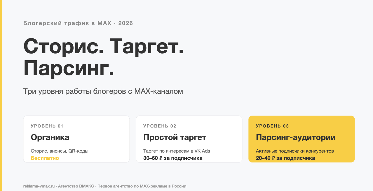 Блогерский трафик в MAX в 2026 году перестал быть вопросом «заходить или нет» — заходят все. Вопрос стал другим: на каком уровне работы находится блогер и готов ли двигаться дальше.