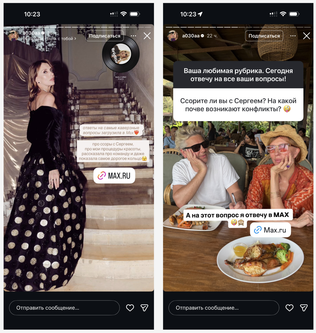 Последние месяцы в лентах Instagram (принадлежит компании Meta, признанной в РФ экстремистской и запрещённой) и VK всё чаще появляется узнаваемый шаблон: «ответ загружен в MAX», «продолжение в моём канале MAX», «голосование только в MAX». Светлана Бондарчук, несколько крупных новостных блогеров и целая волна микро-инфлюенсеров используют один и тот же приём — тизер в публичной соцсети, разгадка в приватном канале мессенджера.