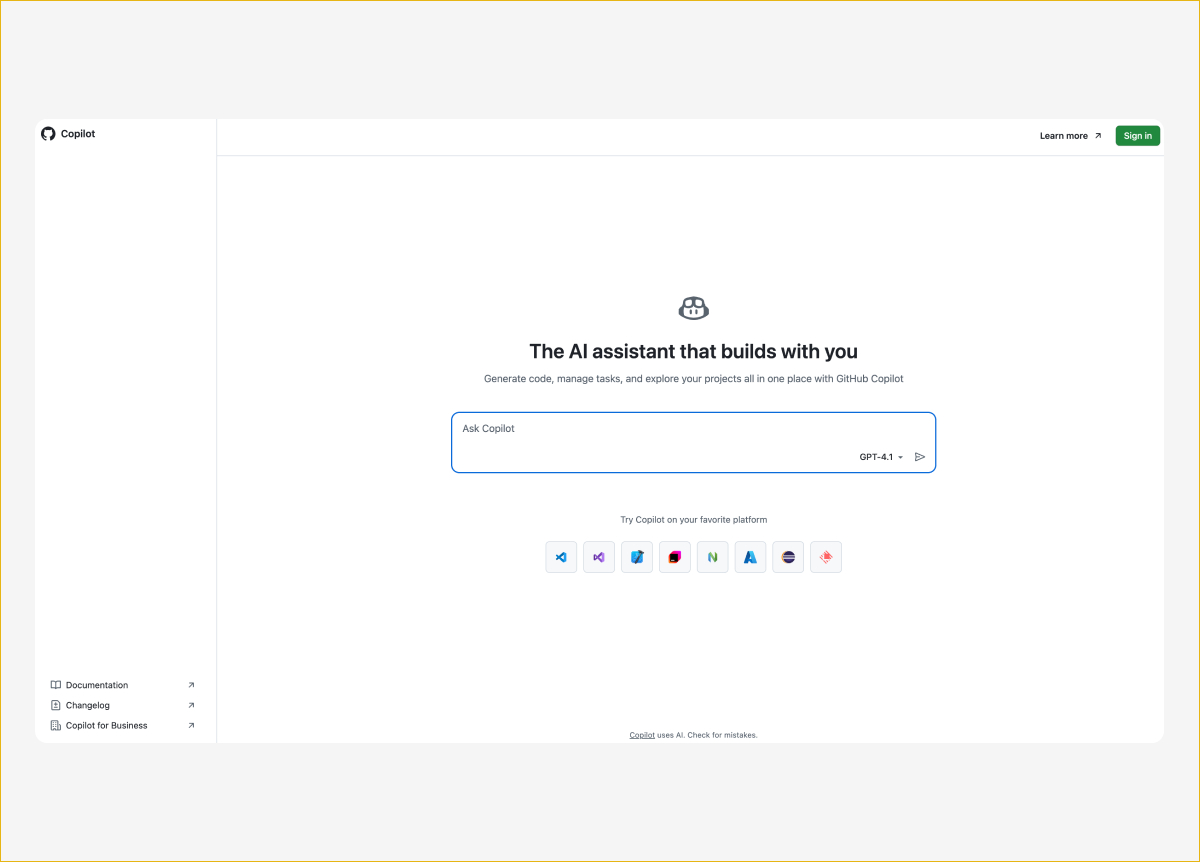 GitHub Copilot — самый популярный ИИ-ассистент для кода в мире. Его сделали GitHub и OpenAI, а под капотом работают модели семейства GPT и Claude. Copilot встраивается в VS Code, Visual Studio, JetBrains IDE, Neovim и Xcode. Он дописывает код во время набора, генерирует целые функции по комментарию и отвечает на вопросы в чате прямо в редакторе.