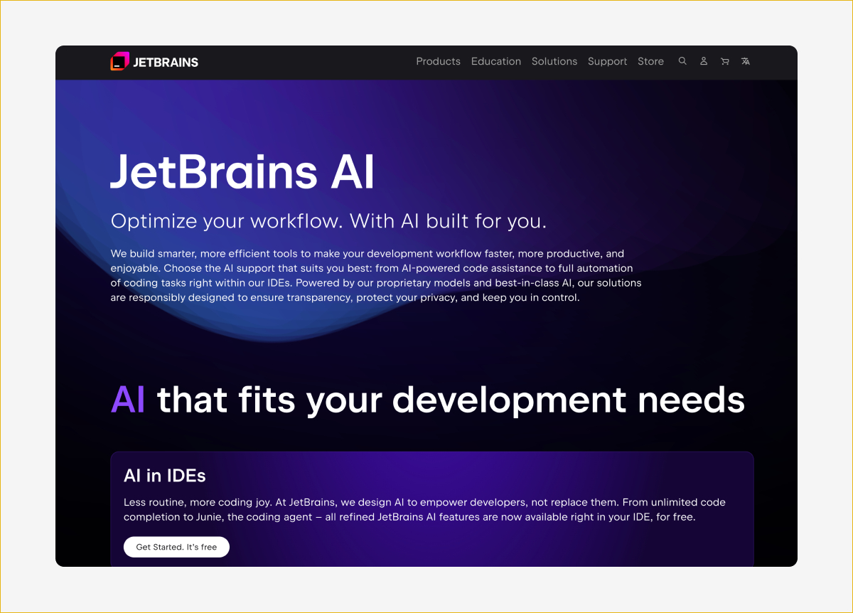 Слабые места: работает только внутри JetBrains IDE — если вы пишете в VS Code или другом редакторе, инструмент бесполезен. Ассистент моложе Copilot, и в сложных агентных задачах пока уступает специализированным средам вроде Cursor и Claude Code.