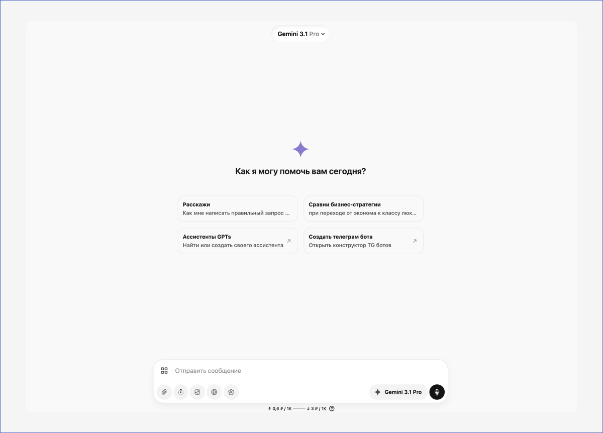 GPTunneL решает эту проблему. Это российский сервис, который собрал в одном интерфейсе все главные нейросети: ChatGPT, Claude, Gemini, Grok, DeepSeek, плюс генераторы изображений вроде Midjourney и FLUX.