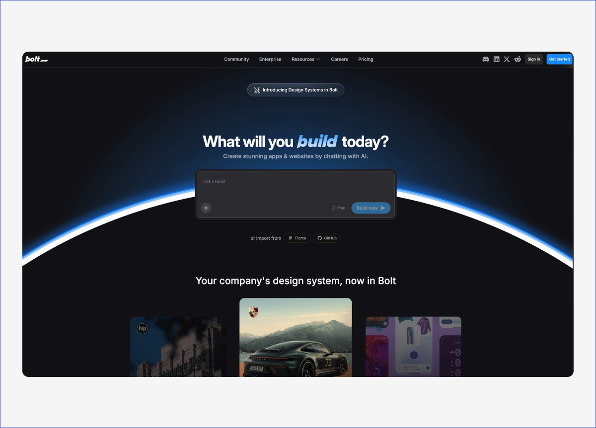 Bolt сильнее всего в скорости первого результата. Если задача — за час получить кликабельный прототип, который не стыдно показать партнёру или инвестору, это самый быстрый путь. Открываешь bolt.new, описываешь приложение, через 2-3 минуты кликаешь по живой ссылке. Деплой в один клик через интеграцию с Netlify.