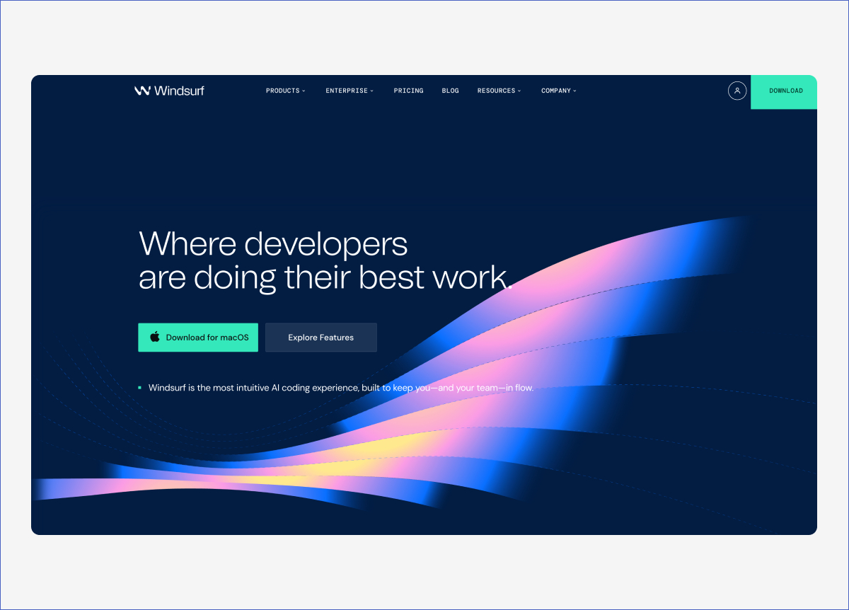 Прямой конкурент Cursor от компании Codeium. Тоже форк VS Code, тоже глубокая интеграция ИИ, тоже агентный режим. Главное отличие — Cascade, агент Windsurf, который удерживает контекст всего проекта и может работать с большими кодовыми базами без потери логики между файлами.