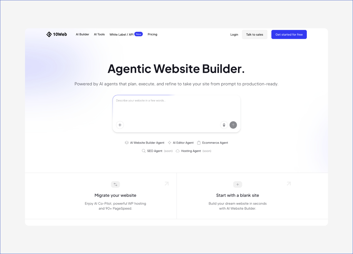 10Web — это конструктор сайтов на базе WordPress с встроенной нейросетью. В отличие от большинства сервисов, он не просто генерирует страницу, а создает полноценный сайт, который работает на привычной CMS.