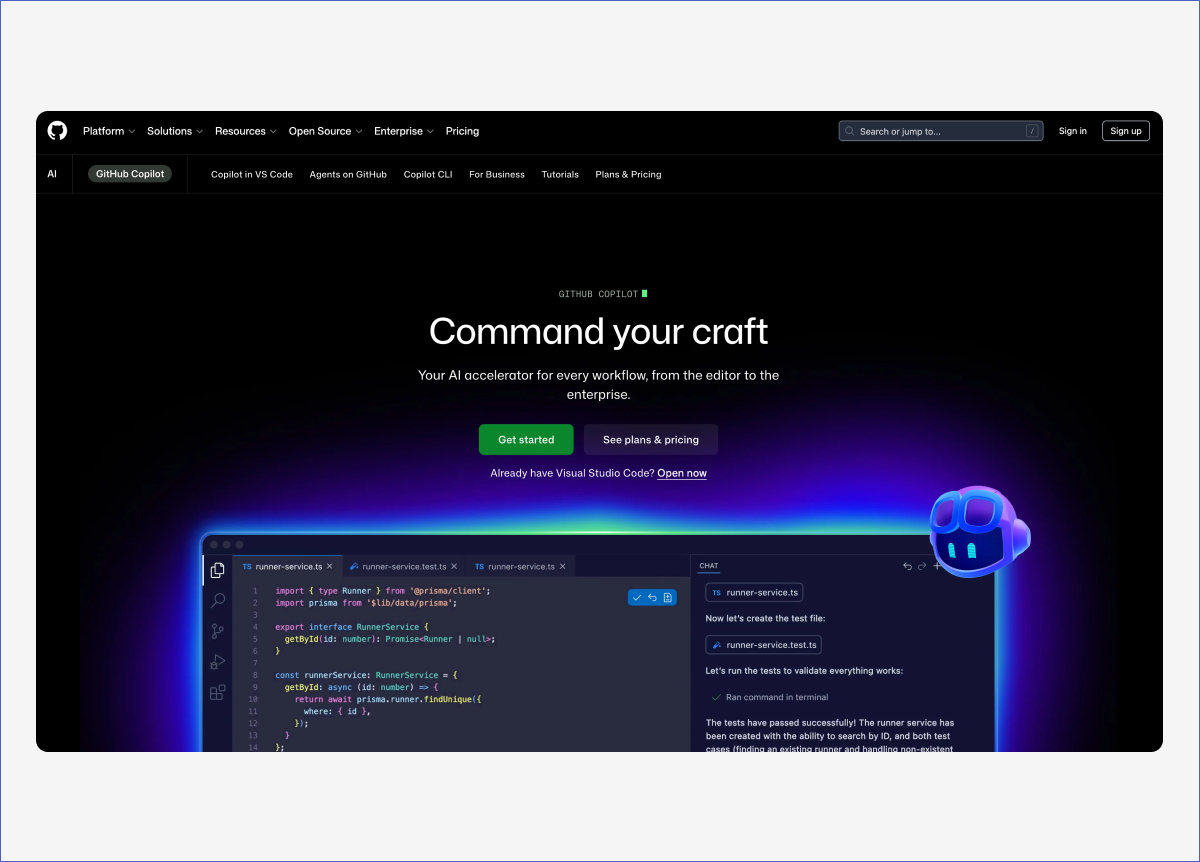 GitHub Copilot — это ИИ-помощник для написания кода. Он встраивается в редактор и подсказывает решения прямо в процессе разработки. Подходит для тех, кто хочет создать сайт с нуля, но быстрее.