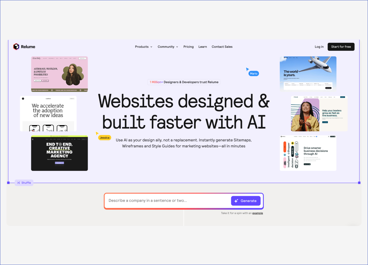 Главное преимущество — продуманная логика. В отличие от простых генераторов, Relume помогает не просто «собрать сайт», а выстроить его структуру под задачи бизнеса. Это особенно важно для SEO и конверсии.