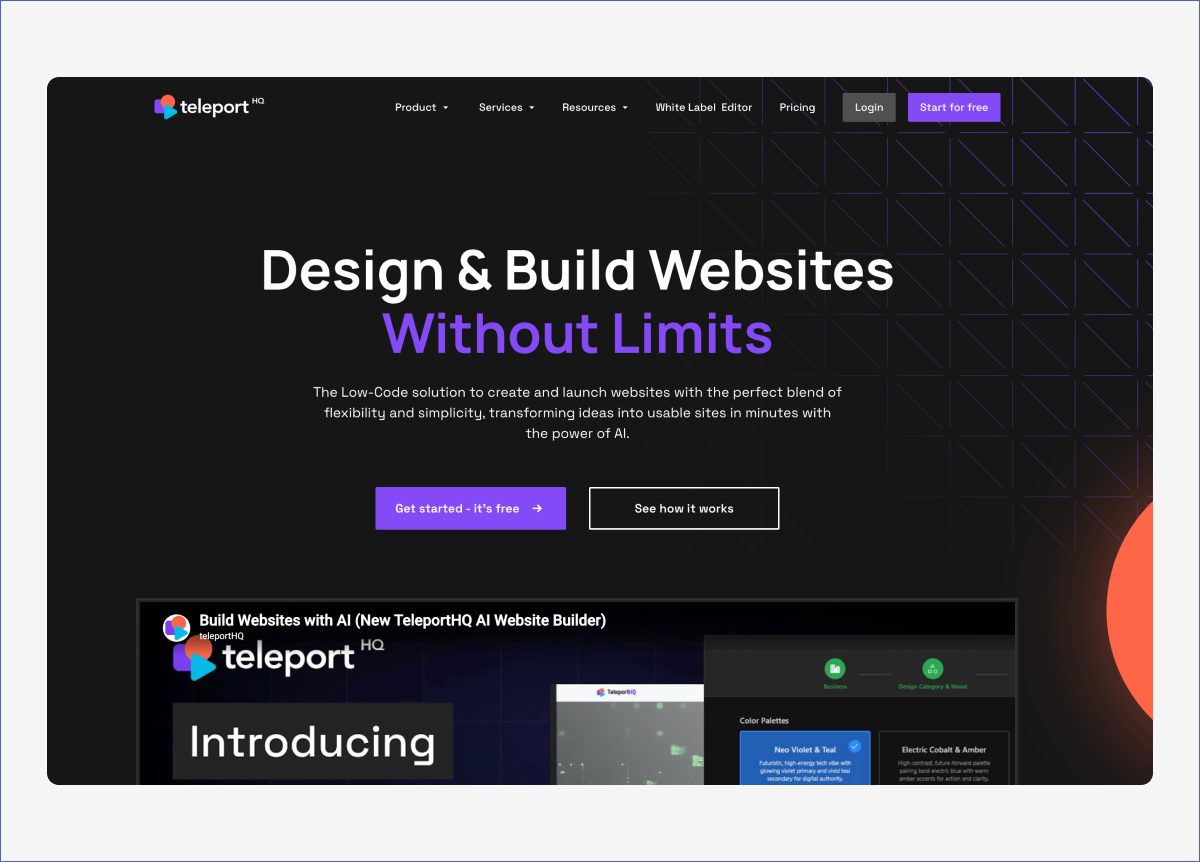 TeleportHQ — это инструмент, который сочетает AI и генерацию кода. Он позволяет не просто создать сайт, а сразу получить готовую верстку, которую можно использовать в разработке.