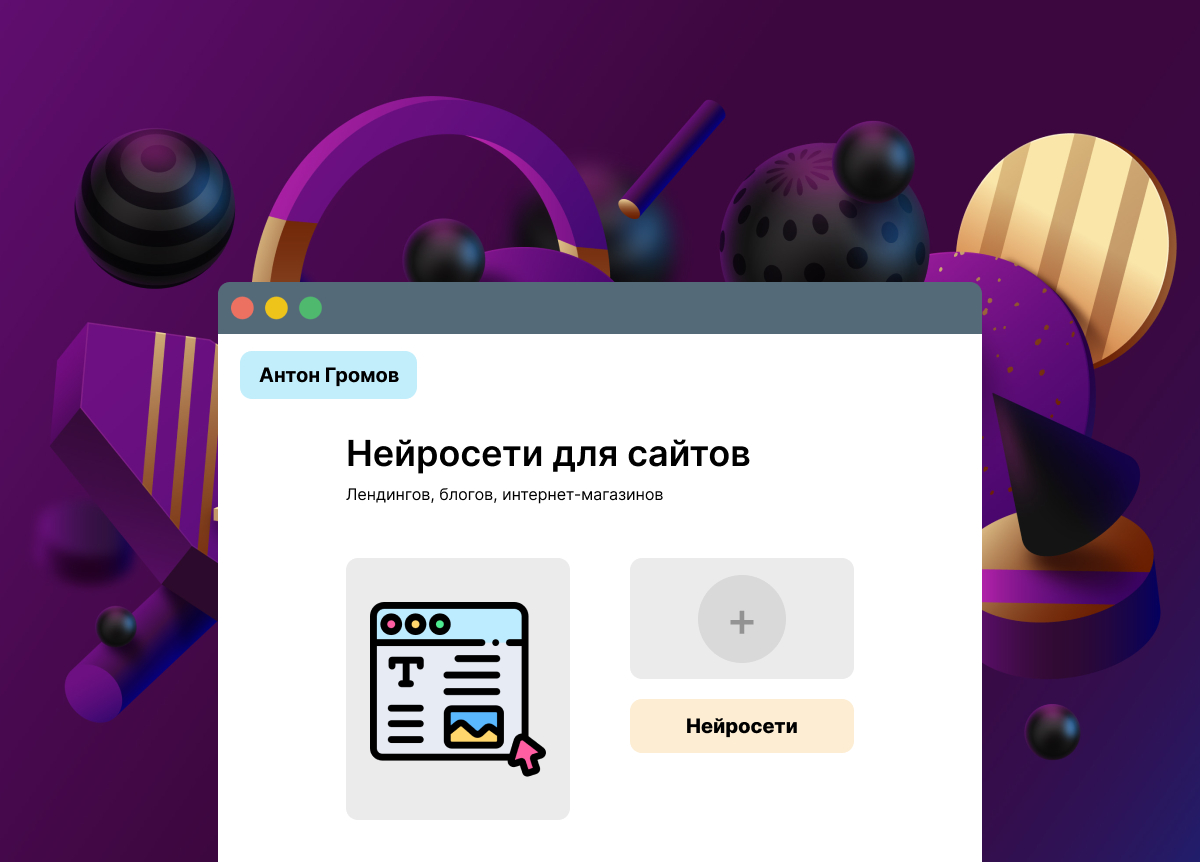 Сайты-визитки. Это небольшой сайт о компании или специалисте. Обычно включает описание услуг, портфолио и контакты. Нейросеть быстро собирает такую структуру и заполняет ее базовым контентом.