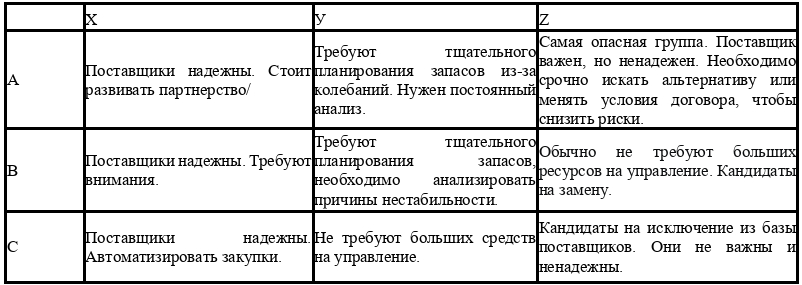 Такой подход позволяет получить наглядную матрицу, где каждый товар характеризуется двумя критериями: важностью для бизнеса (ABC) и предсказуемостью спроса (XYZ).