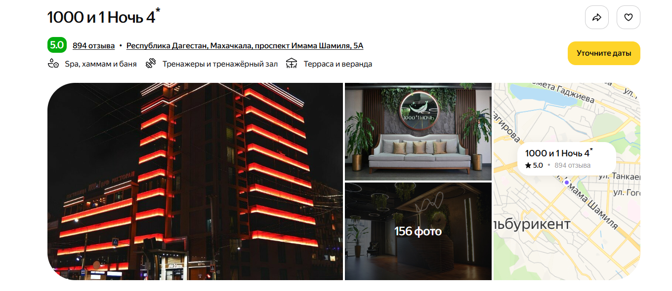 1. 1000 и 1 Ночь 4* — лучший городской отель в Махачкале