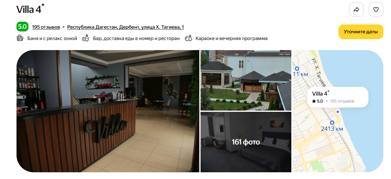 5. Villa 4* — лучший комплекс у моря в Дербенте