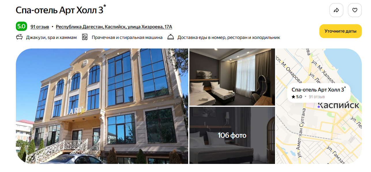 Для попадания в этот рейтинг лучшие отели в Дагестане должны одновременно соответствовать пяти условиям. Так из выборки выпали десятки вариантов с раскрученными названиями, но неоднозначным сервисом.