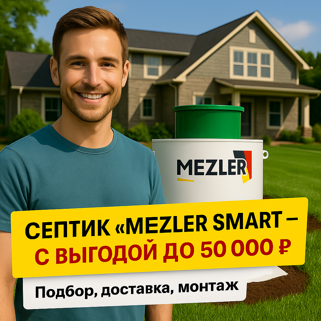 Это важно: заказчик избавляет клиента от любых сторонних подрядчиков.Один договор — один подрядчик и под ключ.Септик Mezler март 2026 годаУстановленный септик Mezler март 2026 года