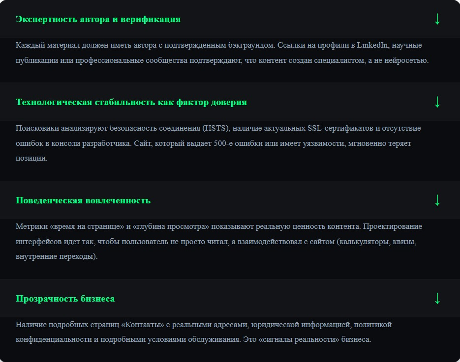 3. Факторы доверия и экспертности (E-E-A-T).