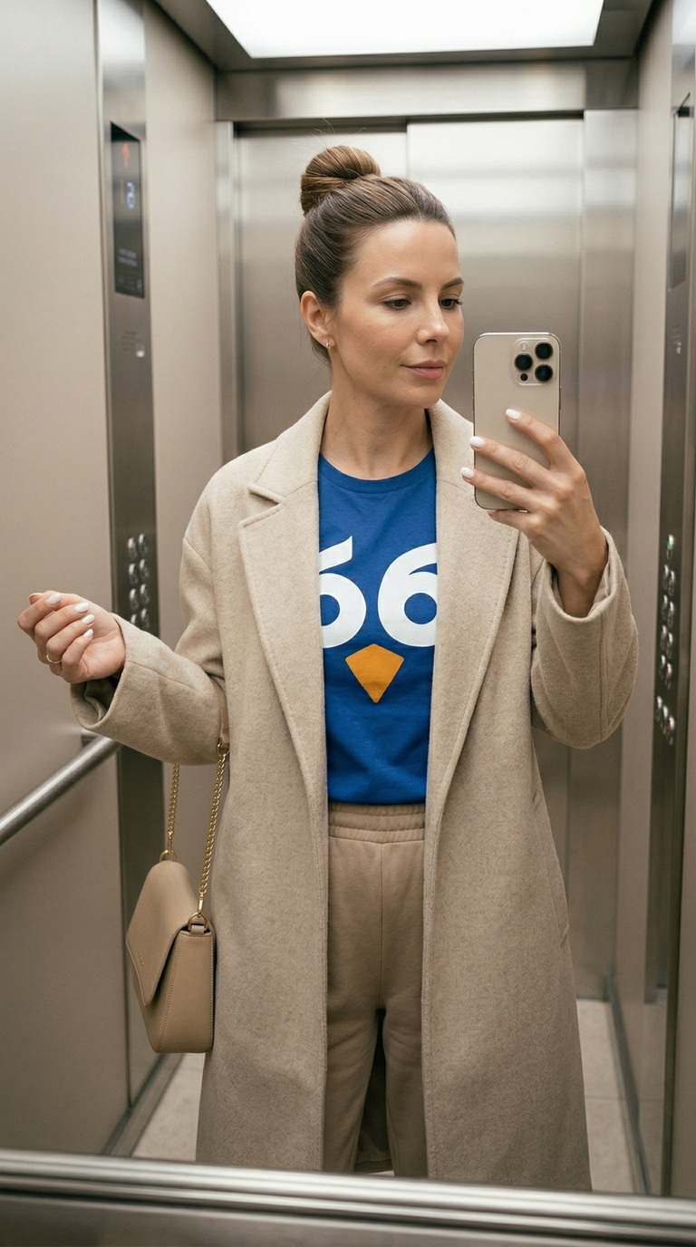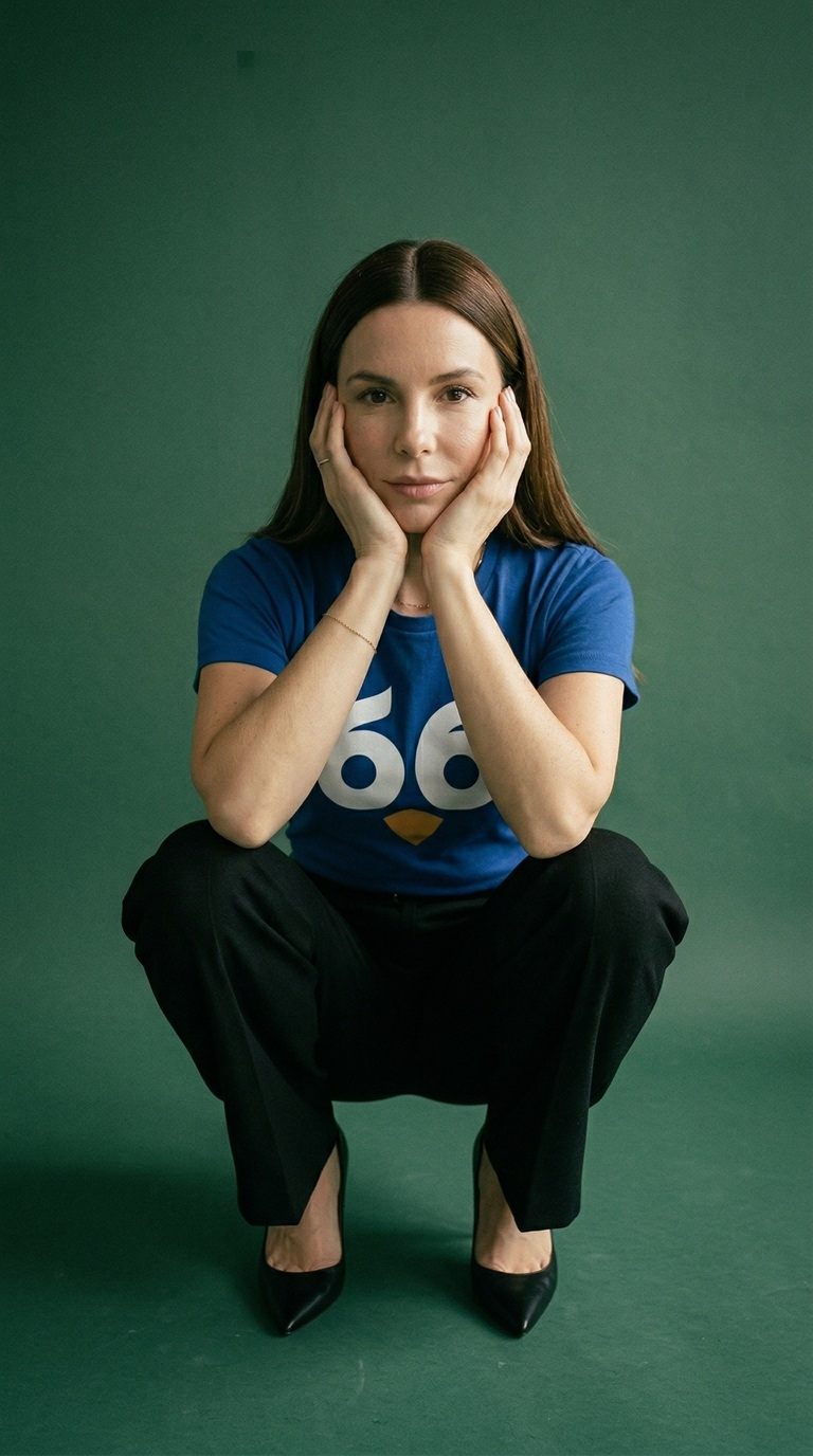 Сам образ — тоже продукт работы с ИИ. Мы начали с простого запроса: «привлекательная внешность женщины 30+ средней полосы России». Нейросеть выдавала глянцевые идеалы, и мы спорили с ИИ, отсеивая лишнее и уточняя детали, пока не получился живой человек. Русые волосы, рост 170 сантиметров, лицо без ретуши — с морщинками и следами мимики, как в жизни. Минималистична в одежде: брюки, нейтральные цвета, никаких украшений. Замужем, но в ролике муж появился пока только один раз.