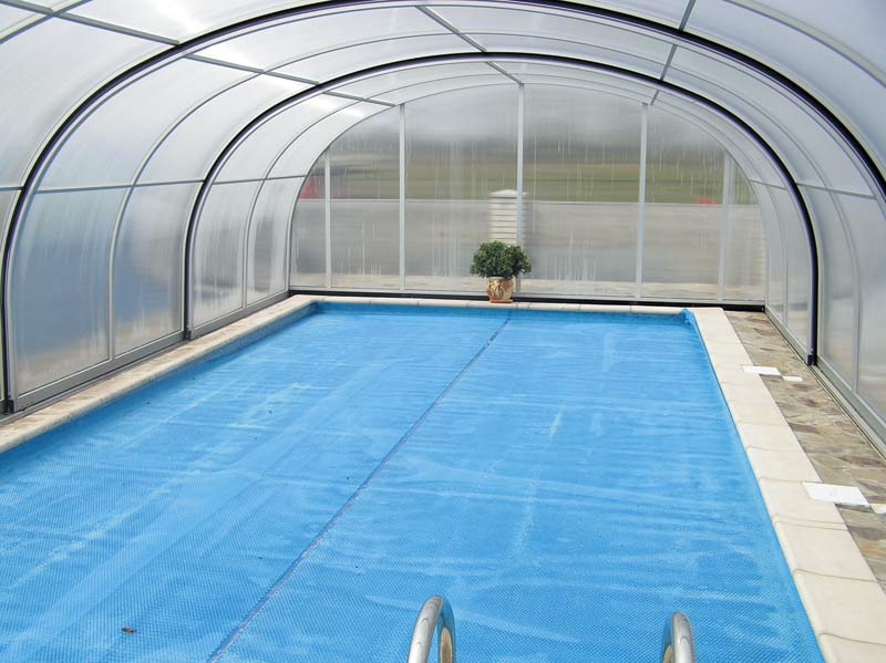 Полноценная теплица из поликарбоната выигрывает по всем пунктам: лучше греет воду, полностью защищает от мусора и позволяет использовать бассейн почти круглый год.