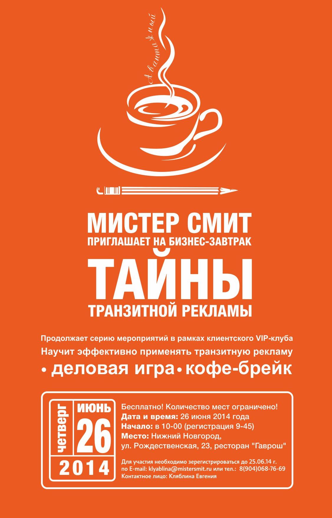 РА приглашает всех желающих провести в хорошей компании теплое летнее утро и за чашкой кофе поговорить об эффективном использовании транзитной рекламы.
