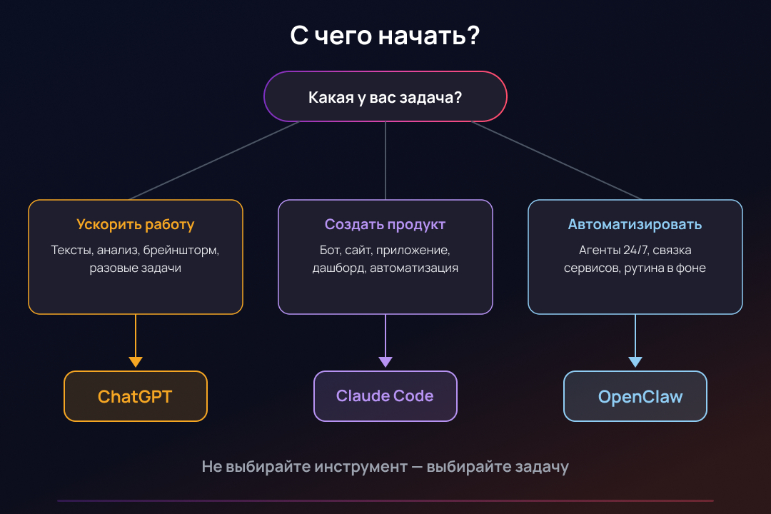 Выберите один инструмент. Решите одну задачу. Получите результат. Потом расширяйте.