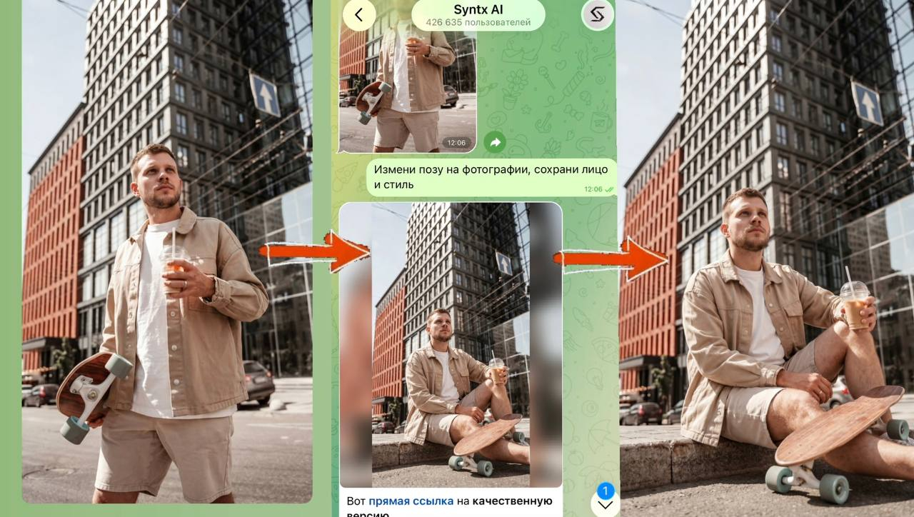 И всё. Никаких сложных инструкций. Через 15–20 секунд нейросеть создаёт новое изображение.