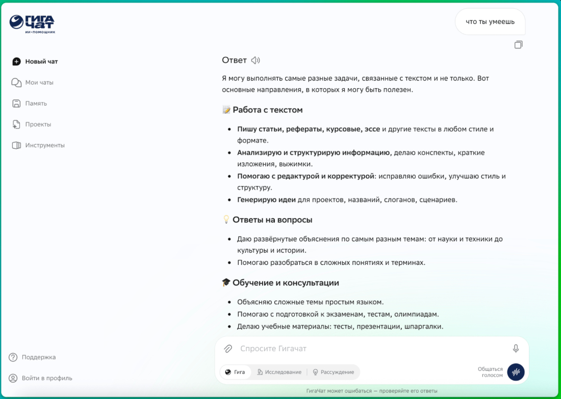 Также GigaChat умеет: