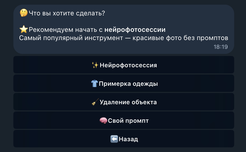 Нет. В телеграм-ботах все сделано максимально просто: нажал кнопку, загрузил фото, получил результат.