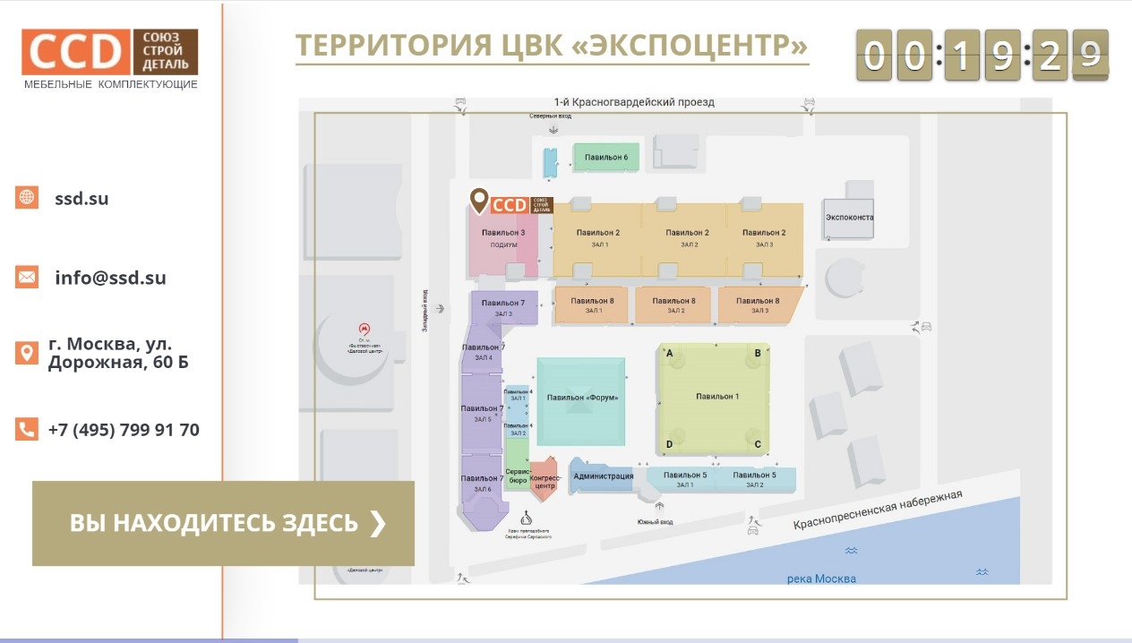- размещение схемы выставки с отметкой на ней Вашего выставочного стенда. Это поможет людям понять где они находятся и как им дойти до кафе, конференц-зала или WC.