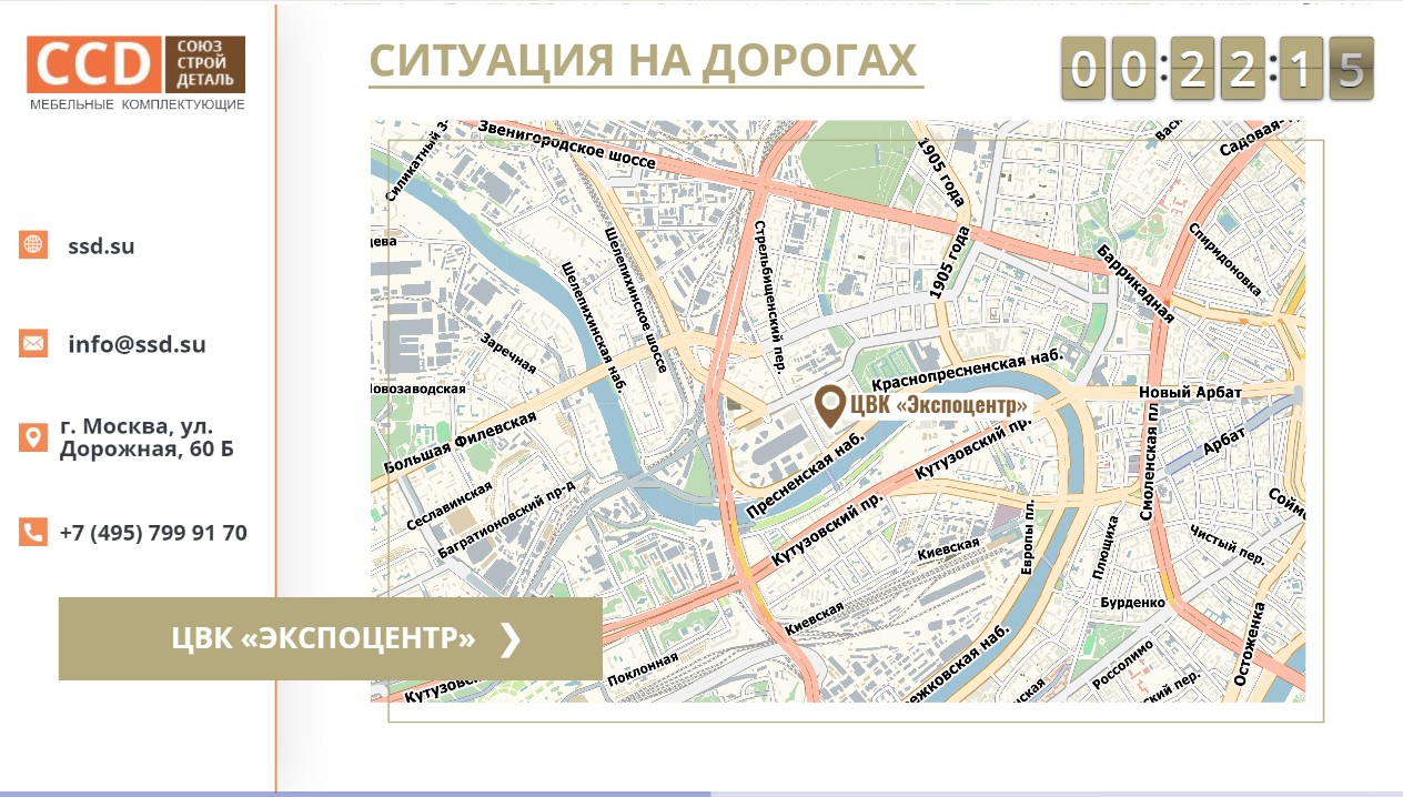 - размещение карты пробок рядом с выставочным центром и прогноз погоды на день – автоматически привлечёт внимание посетителей выставки к Вашему экрану, а значит – и к Вашей рекламе.