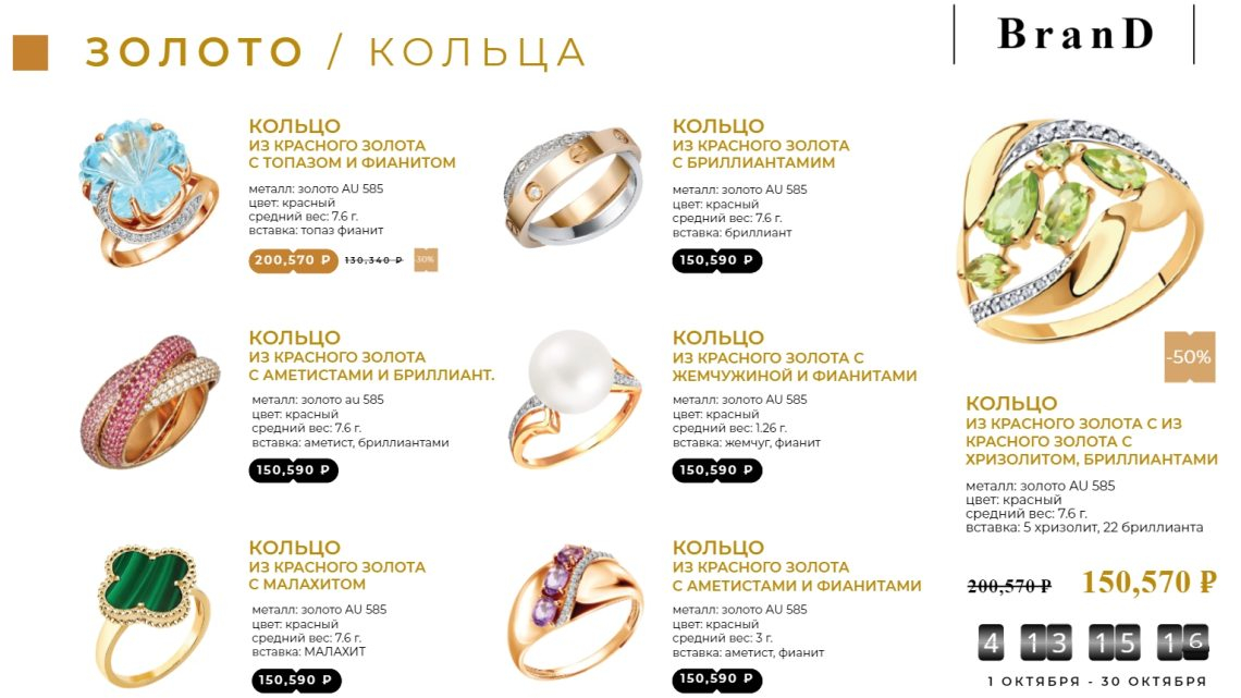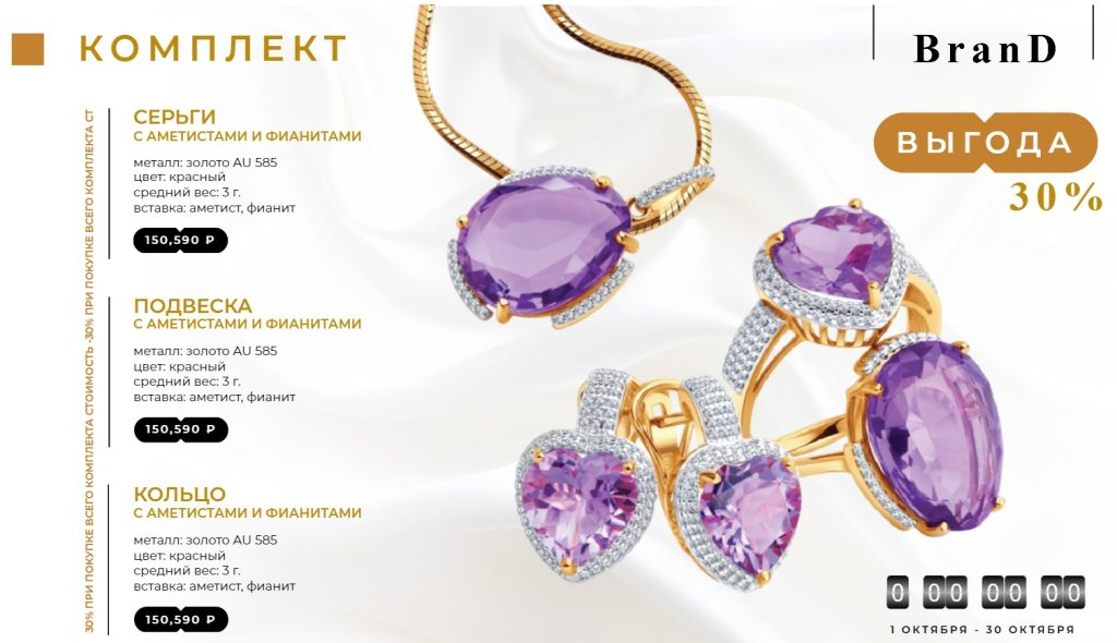 Ну и конечно, классический вариант для мотивации – это счётчик обратного отсчёта до окончания рекламной акции или предоставления скидок на конкретное ювелирное изделие.