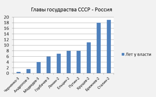 В общем, получается, что правильный бренд для политического деятеля, который намеревается стать главой страны, это фамилия из 2-х слогов, оканчивающаяся на -ин или -ев. Именно такой "бренд" изначально может претендовать на многое... Удивительно, что и здесь Горбачев попал в эдакую переходную зону! Фамилия трехсложная, а у власти пробыл дольше своих «коллег» с цифрой «3».