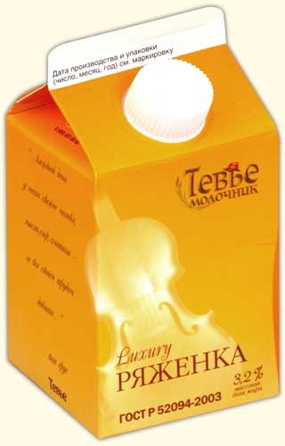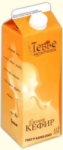 "Тевье-молочник"! Нейминг для нашей юдофобской державы, конечно, знатный... Ну а продвинутые потребители тут же вспомнят самый знаменитый спектакль по этой повести Шолом-Алейхема - ленкомовскую "Поминальную молитву". Печальная ассоциация... Да и желтенький цвет упаковки для кефира и ряженки как-то не катит... Плюс эта скрипочка...