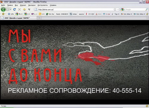 Один из клиентов киевского рекламного агентства Master Ad заинтересовался рекламой на транспорте в различных городах нашего удивительного государства. Сотрудник, ответственный то ли за этого клиента, то ли за объявления на трамваях и троллейбусах, стал собирать информацию об операторах. Среди прочих контактов ему попался адрес электронной почты некоего агентства, которое размещает рекламу на транспорте славного города Криворй Рог. Решив узнать о потенциальном партнере побольше, менеджер скопировал то, что следует в "мыле" после символа @, а именно abriss.com.ua, вставил в адресную строку браузера, нажал кнопку мыши, и упал со стула. Перед ним открылась стартовая страница ООО "Дизайн студии "Абрис":